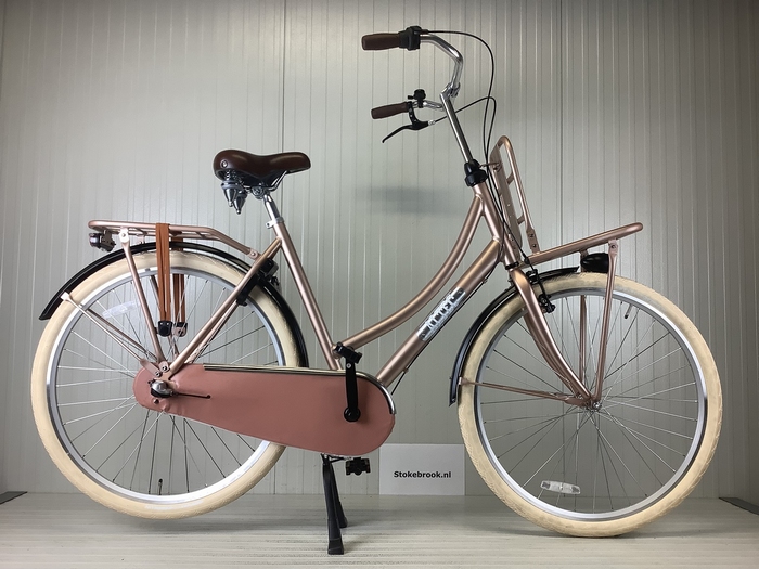 Met 3 versnellingen, aluminium frame, terugtraprem + handrem, stuurslot, voordrager, slot en batterijverlichting.